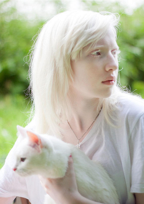 2020年12月25日模特兒不僅要漂亮,還要有特色,這才能被人記住。烏克蘭18歲女孩Nastya Zhidkova就有幾乎透明的雪白色皮膚、一頭白金色的頭髮,還有顏色極淺的雙眸。她就像雪精靈一般美麗神聖,讓人不忍觸碰。Nastya患有白化症,她把這種先天的基因缺陷轉變成了外表的優勢~