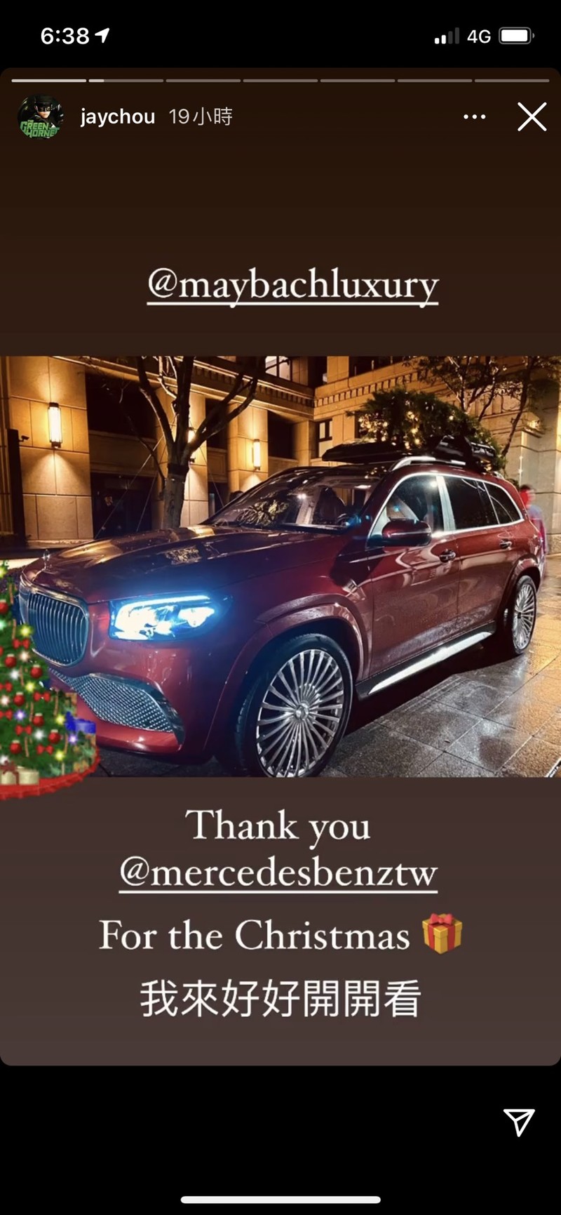 2020年12月27日聖誕節到來,大家都在討論交換禮物。天王周杰倫收到的禮物讓人超羨慕!12月24日,他在IG限時動態透露,自己收到賓士的大禮,竟然是一台賓士邁巴赫(Mercedes-Maybach)GLS 600 4Matic層峰休旅,售價為999萬元起。他立刻搭上去並分享自己的心得。