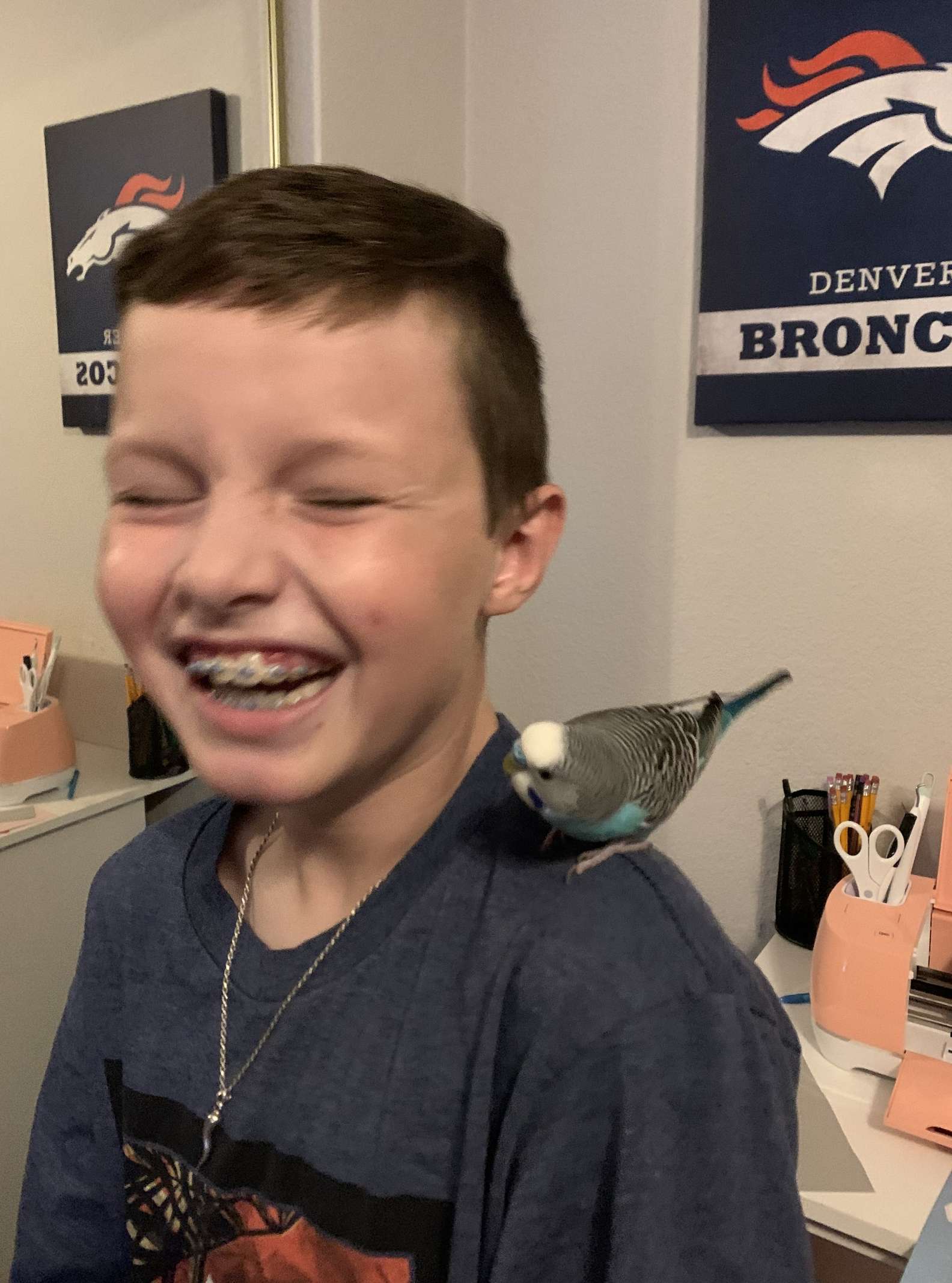 流浪鸚鵡主動找上門~有一天佛羅里達州清水市(Clearwater)媽媽Chris Meli和兒子Kayden正在院子裡玩球,一隻可愛的藍色小鸚鵡突然飛了過來。牠落在Kayden的腳邊,Kayden連忙後退幾步,沒想到小鸚鵡一蹦一跳跟了上去。