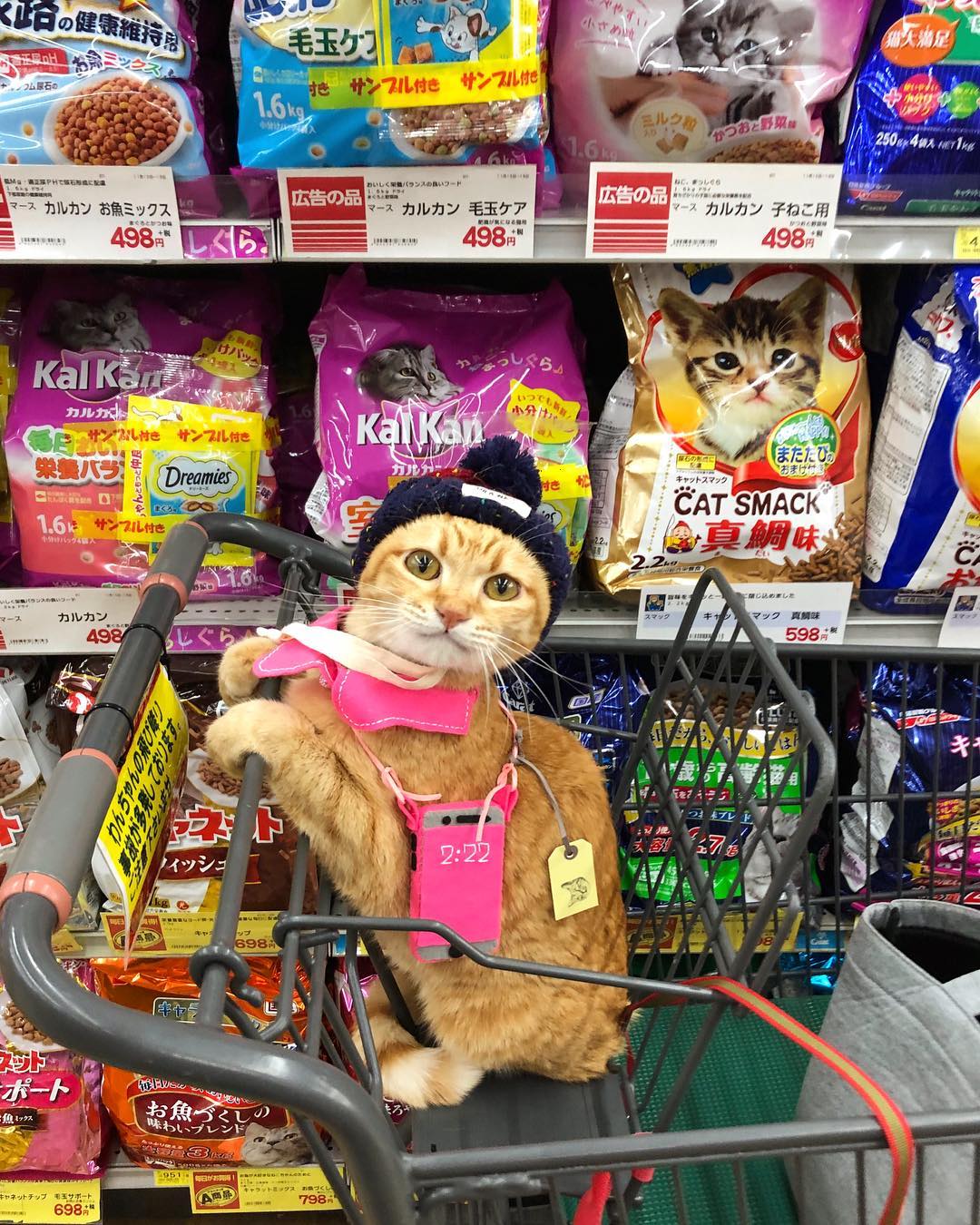 貓咪乖巧地坐在購物車上認真挑罐罐的模樣可愛到超過了!面對這麼可愛的喵咪,不管牠看上了哪些罐罐,主人都會甘心情願地帶回家吧!
