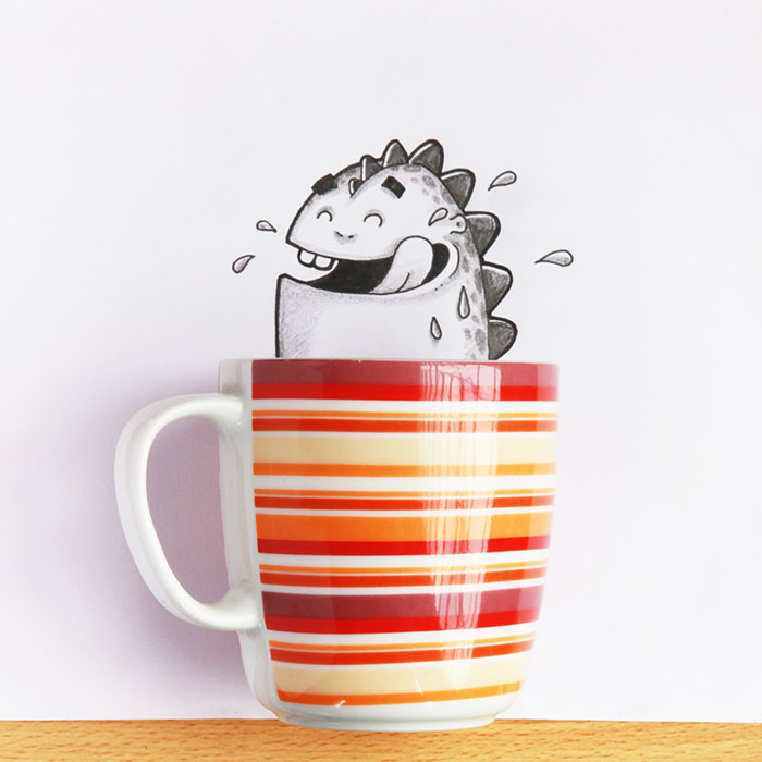 他們畫了一個卡通龍,並且還和現實的物件互動。比如放大鏡,鉛筆等等。這一系列的作品是如此的可愛。很多粉絲都喜歡這只卡通龍。他們還給這只可愛的卡通龍起了個名字叫Drogo。