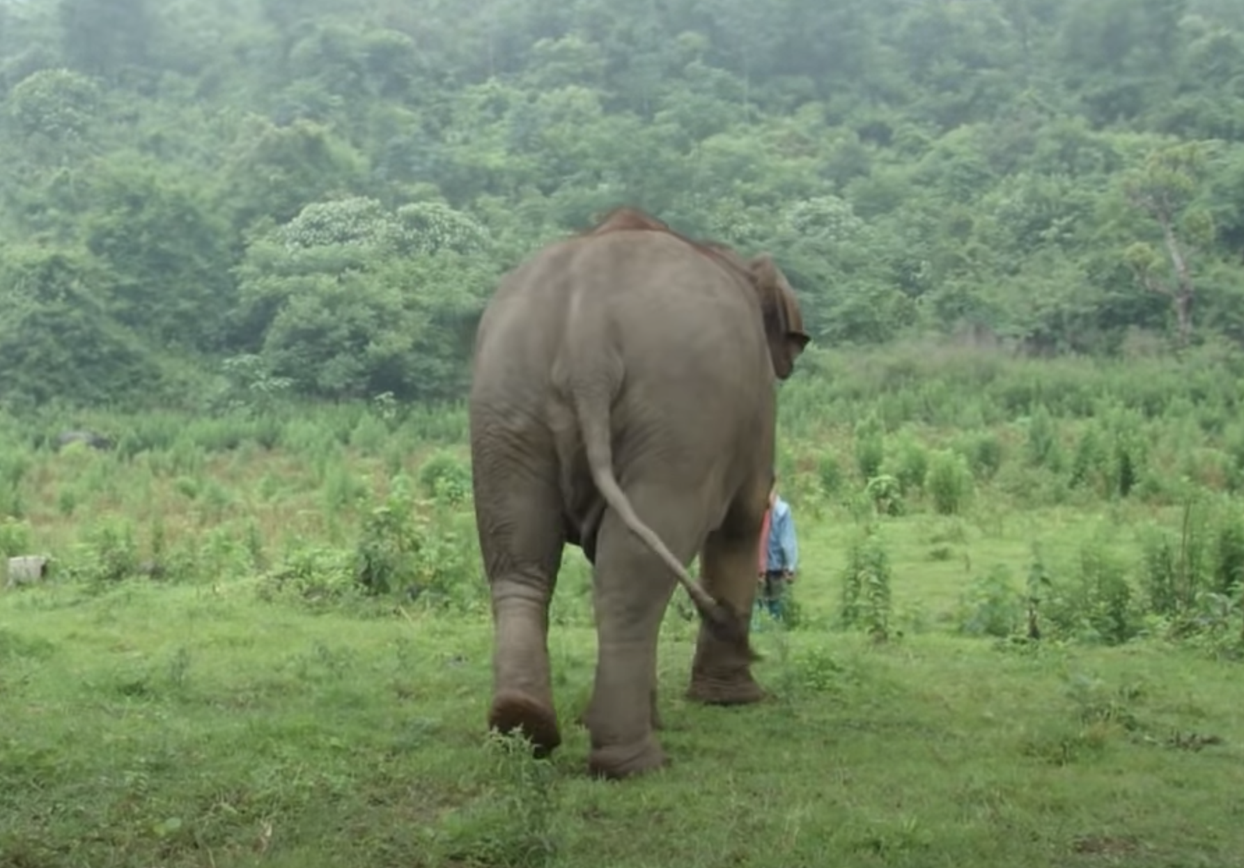 大象從小「全身纏鐵鍊」被救援 牠回歸野外「燦笑舉鼻歡呼」:終於自由了!