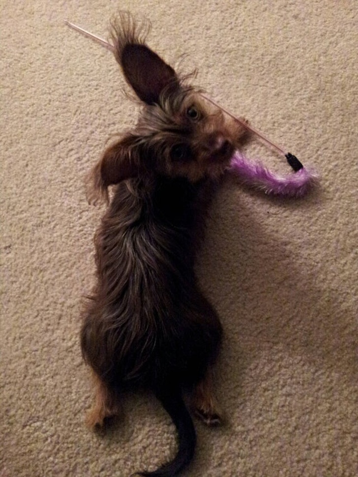 ▼「我家的汪拿走了隔壁貓咪的玩具。」