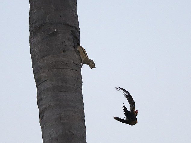 2021年01月03日睡得香甜時被打擾,不管是誰應該都會很火大~日前在印度南部的泰米爾納德邦(Tamil Nadu),攝影師Ravi Rai就拍到了非常有趣的一幕。只見一隻啄木鳥落在大樹上狂啄樹幹,正在樹洞中睡覺的松鼠被吵醒,牠實在忍不下去,竟然揮拳將啄木鳥趕走,好像在說:「你煩不煩?!」