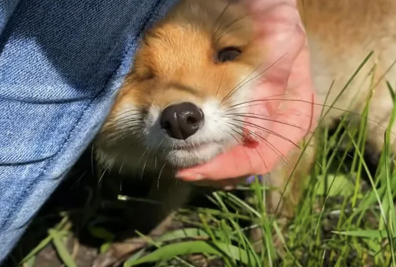 ▼小狐狸不怕人,牠大概也知道這兩個人會救自己,於是親暱地跑過去撒嬌。夫妻兩人用毛衣當毯子,將牠裹起來保暖。牠就像回到了媽媽的懷抱一樣,放鬆地瞇起眼睛。