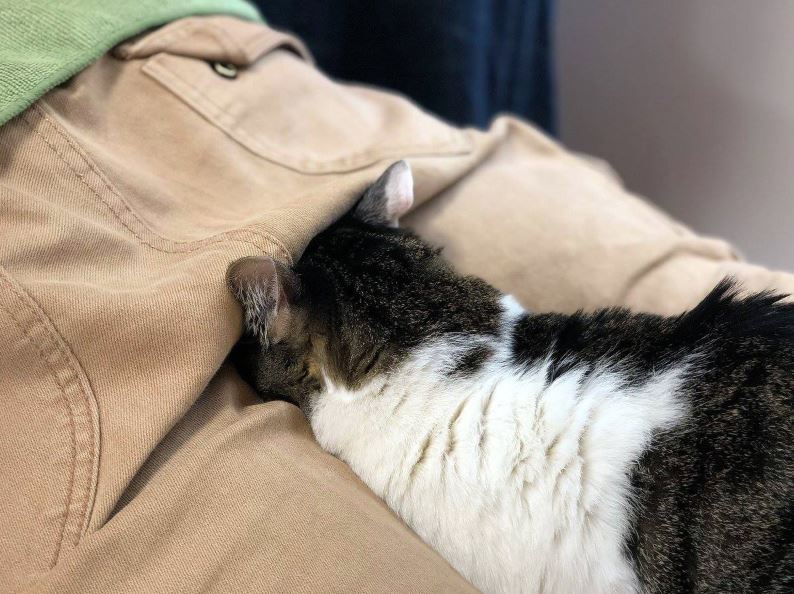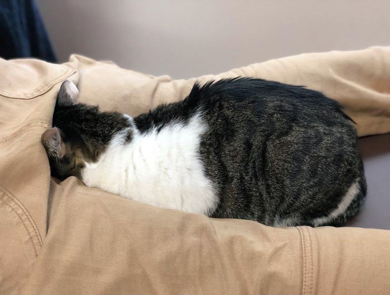 ▼原po開玩笑說:「師父,你這個新療法是不是菊花會有點熱?」貓咪的臉和身體緊緊貼著奴才的屁屁,不留一絲空隙。這看起來很暖和,但總感覺會有其他的味道…