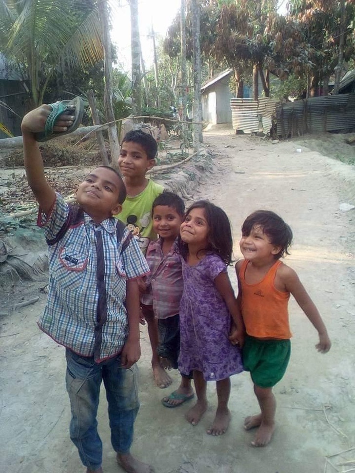 ▼也許他們買不起手機或相機,可是模仿這個動作也能讓他們非常開心。