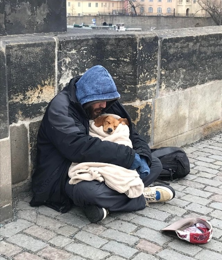 ▼當一名街友住院時,他平常照顧的四隻狗狗每天都守候在醫院門口。