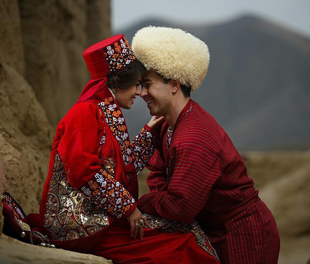 ▼土庫曼斯坦:新娘從頭到腳都披著斗篷,這代表著驅走惡靈、保護新人。