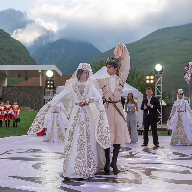 ▼奧塞提亞:新娘穿著長袖洋裝,洋裝上有金色的圖案,腰部還有金色腰帶,這是她們的護身符。