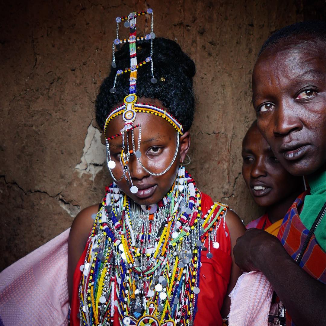 ▼肯亞:新娘戴著複雜厚重的飾品,結婚這天不僅要戴20多條項鍊,還要披上牛皮披肩。