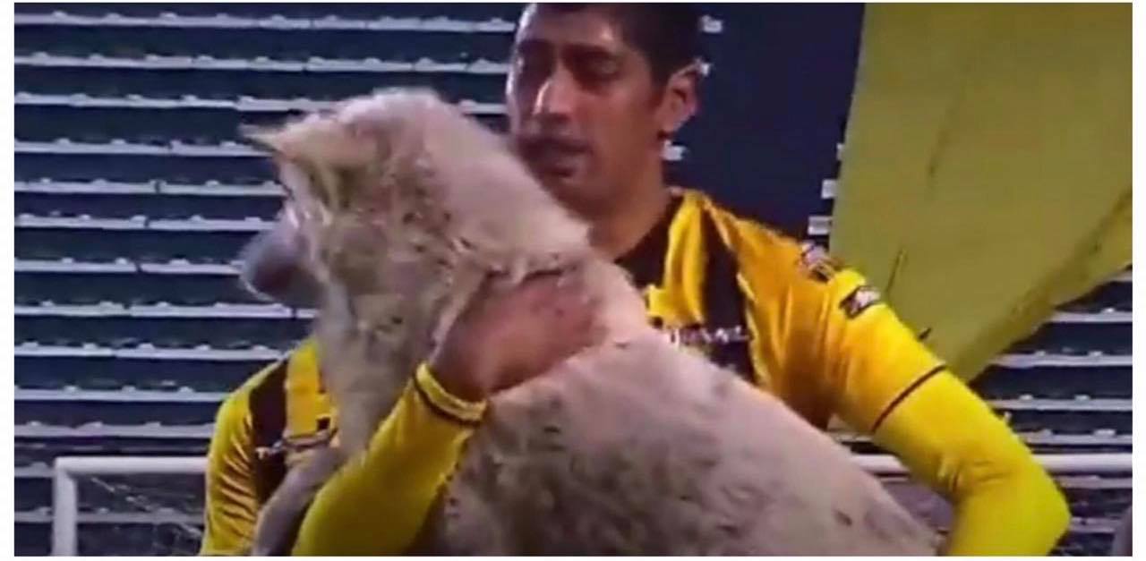 ▼後來一位名叫Raúl Castro的球員將這隻狗狗抱下場,被強制離場的一臉狗狗,看起來非常可愛。這件事被媒體報導後,這隻浪浪紅遍網路。