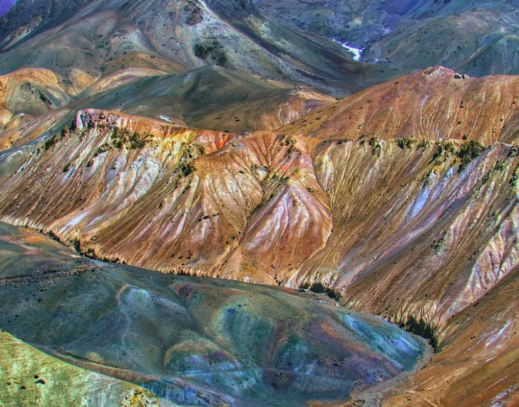 ▼印度的山脈和湖泊,帶有特別的色彩。