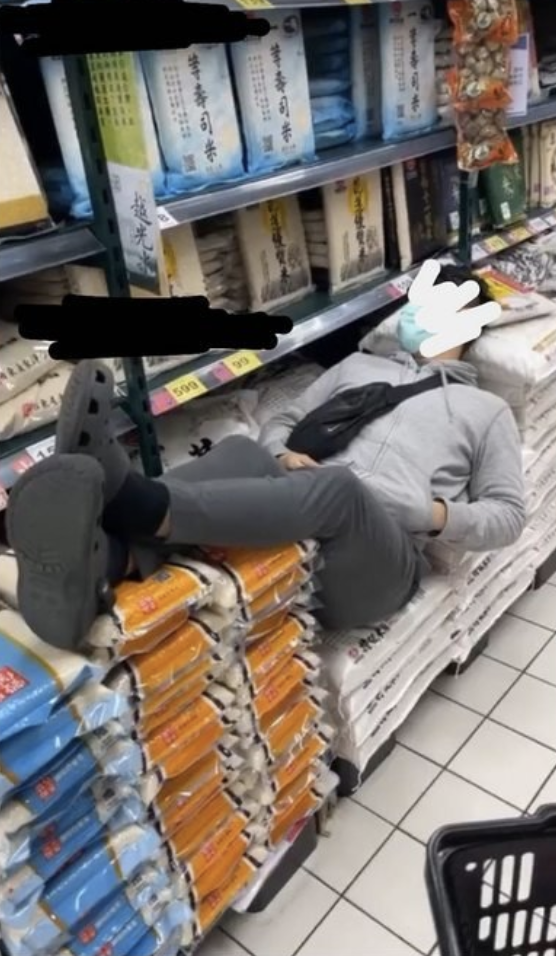 又有屁孩! 在家樂福「騎兒童腳踏車、睡米袋」網罵翻 他急po文道歉:被有心人放大