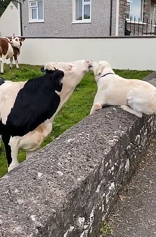 2021年01月12日狗狗很擅長交朋友,牠們不僅能跟人類相處得很好,還能跟其他動物相處融洽~北愛爾蘭弗馬納郡(County Fermanagh)有一隻叫Pablo的2歲金金,牠跟村里的一隻小牛感情很好。雖然這對好友物種不同、體型差別很大,但每次見面都非常親暱,Pablo溫柔舔小牛的臉時,那有愛的畫面讓人心都要融化了。