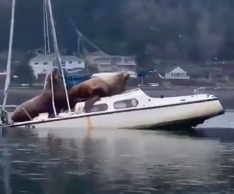 遊艇根本沒辦法承受2隻海獅的重量,船主如果知道這件事,心情一定很複雜,他根本沒辦法找惹事者索賠呀!