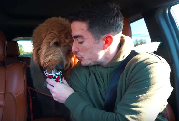 ▼Maxx先開車載狗狗去星巴克,然後路過那塊廣告牌。Dood對廣告牌沒有反應,但路人們都對此很感興趣,忍不住停下來多看兩眼。最後Maxx還帶狗狗去寵物商店挑選喜歡的玩具。Maxx說,他平時就很寵Dood,不管牠喜歡什麼,自己都會毫不猶豫買給牠。