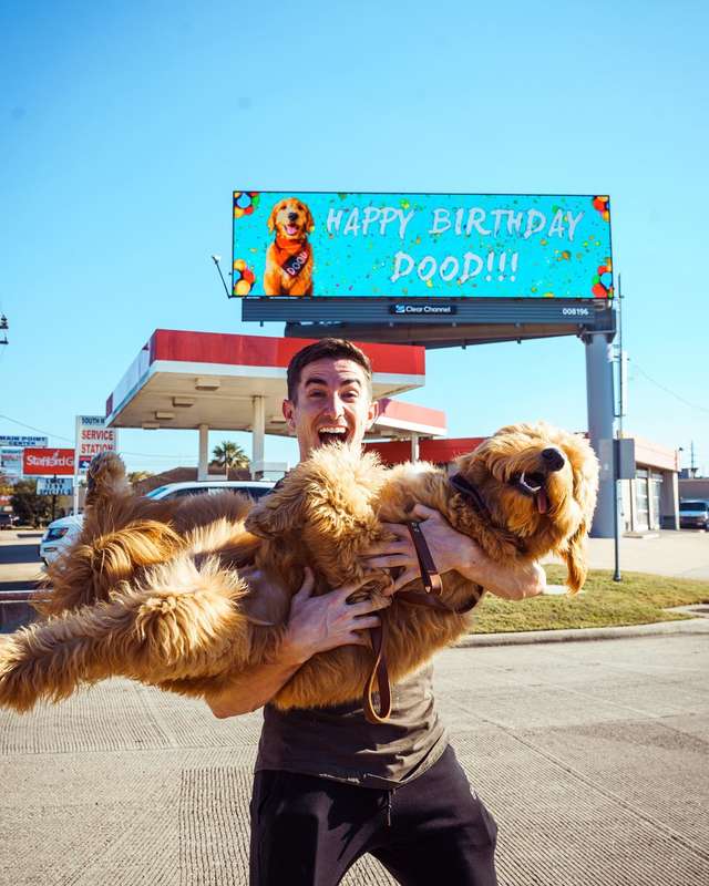 我家愛汪1歲了! 男子「租整面看板」昭告天下 超寵慶生:反正我也沒女友