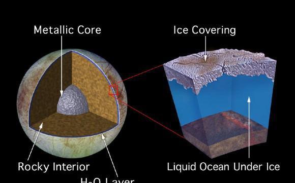 木衛二上不只有一層由稀薄空氣組成的大氣層,還被厚厚的冰層包圍,冰層下則是海洋。Grady教授的報告,讓更多人看到了木衛二具備生物生存的可能,這些都還只是猜測,有待進一步的探索,還需要對木衛二的海洋進行搜尋,來確認是否真的存在生命的跡象。