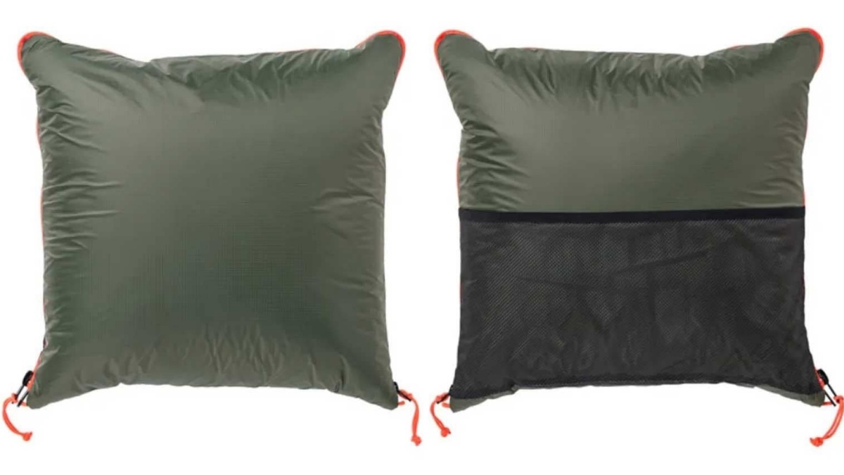 ▼這款「可穿式抱枕 FÄLTMAL」是專為戶外活動設計的,整體採用機能材質,低調的墨綠色也跟自然環境非常搭。抱枕上有一個收納網袋,可以裝一些小物,徹底解放雙手。平時將它裝在網袋裡收起來,不會佔太大空間,就像一個澎澎的抱枕一樣;展開就能穿在身上,非常方便。