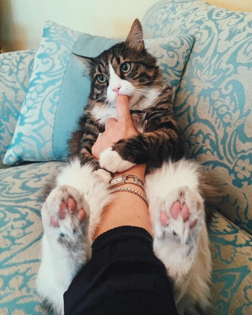療癒到放空!巨貓從小癡迷「吸奴才手手」 長大也抱緊狂吸:人家只是個寶寶~