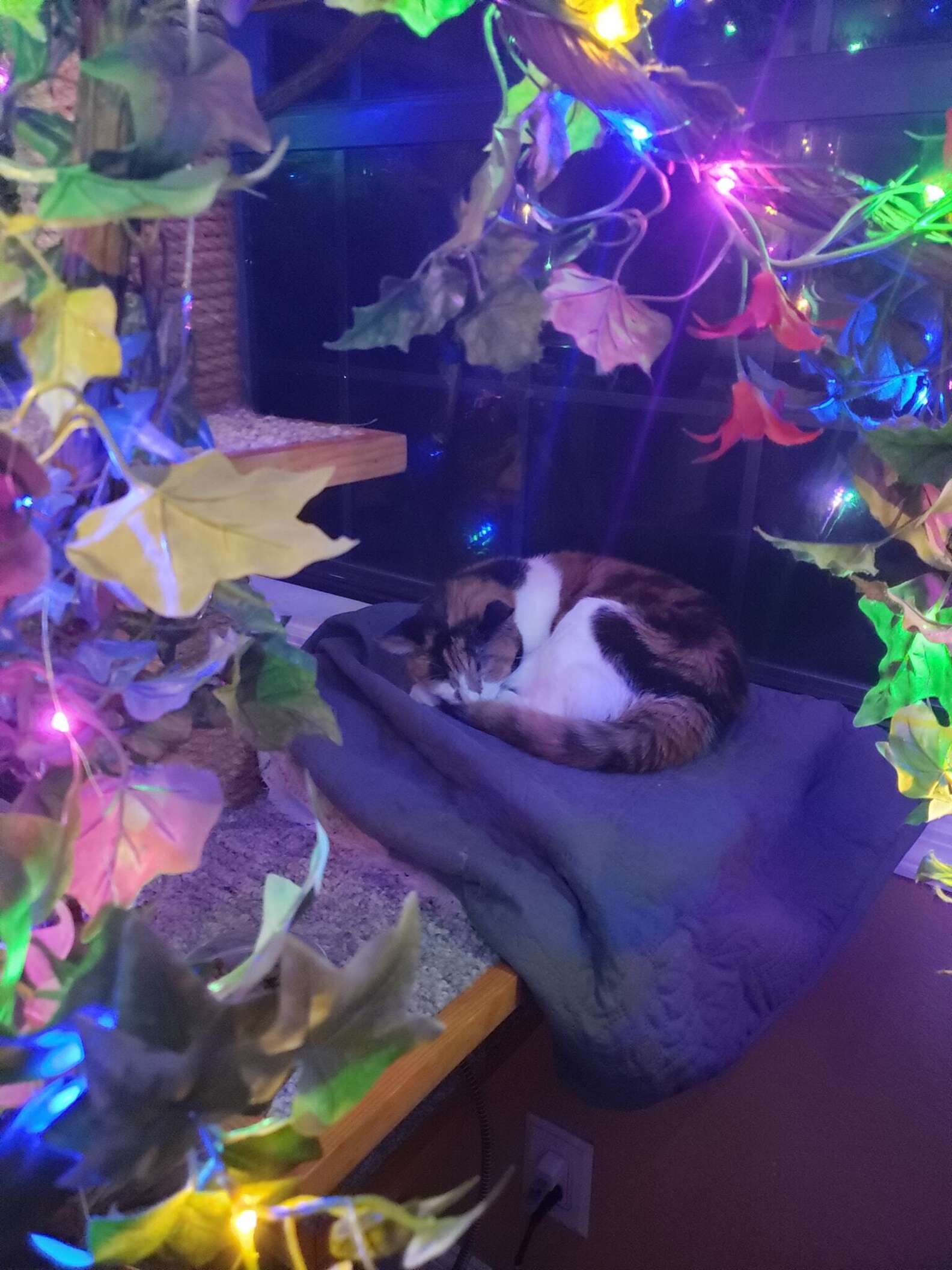 Luna已經到了安享晚年的年紀,把拔馬麻為牠營造了超棒的養老環境。牠能24小時待在聖誕樹上,看著自己最愛的彩燈,這就是Luna幸福的天堂呀!