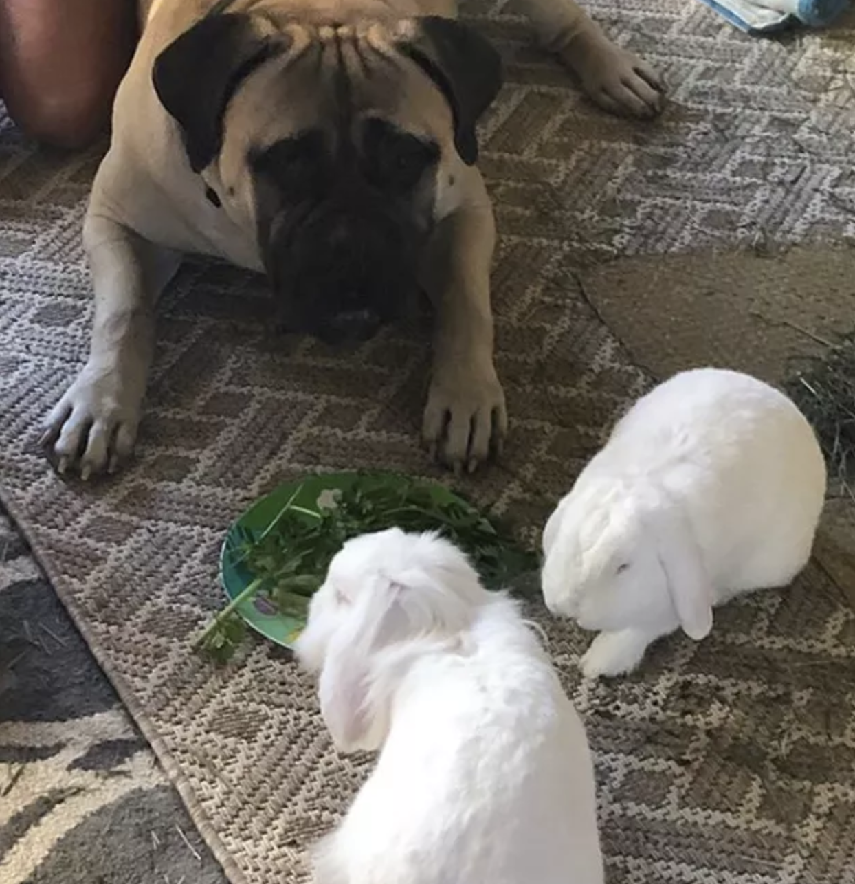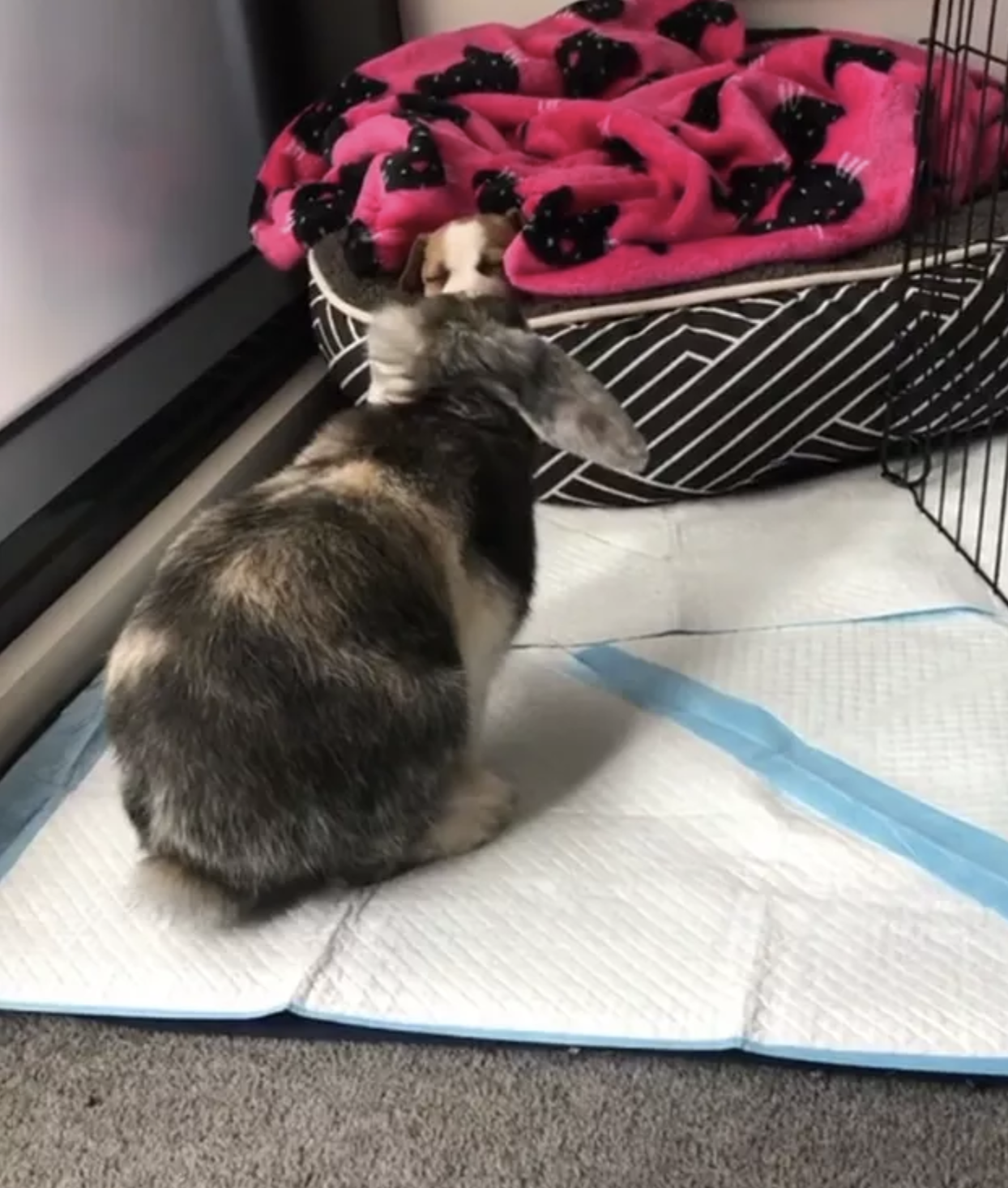 ▼狗狗和兔兔住在一起。