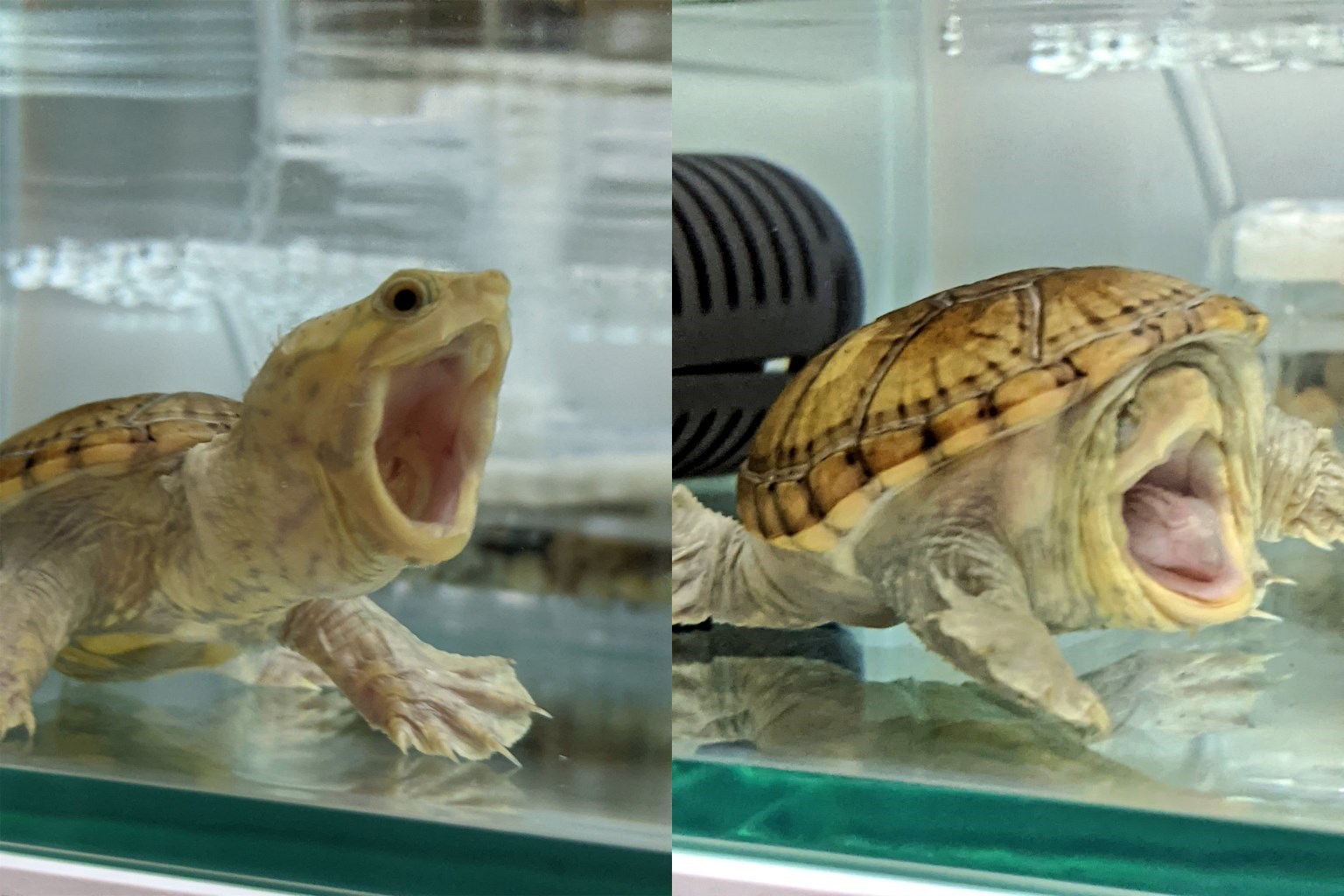 ▼這隻內建表情包的逗趣烏龜還被飼主捕捉到過許多經典瞬間,比如這張張大嘴巴咆哮的畫面,像是在控訴主人「你不要再拍了啦!」