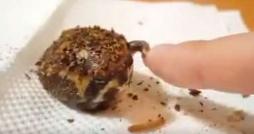 2021年01月21日日前一位日本網友分享了一則影片,只見影片中有一隻迷你蛙蛙,面前放著一條麵包蟲,俗話說得好:「最遙遠的距離,就是有一條麵包蟲近在眼前,但卻怎麼吃也吃不到!」影片中飼主把那條麵包蟲緊緊的按住,不讓蛙蛙吃,只見蛙蛙先是用左手想要把飼主的手撥開,但卻在見到蟲蟲、開心地要伸出舌頭享受美食的緊要關頭,又立刻被飼主擺了一道!