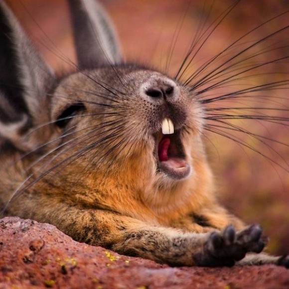 很多野生動物都有圓圓的大眼睛,看起來格外精神。但山絨鼠(Viscacha)卻不一樣,這種小動物天生眯眯眼,好像眼皮很重無法睜開的樣子。網友們看到牠懶散、茫然的表情,忍不住笑說:「你昨晚做什麼了?沒有睡飽嗎?」