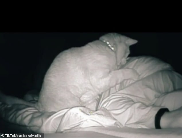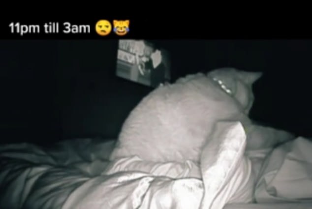 ▼從晚上11點到凌晨3點,Ginger又打又叫,一直沒停過。女子沒有被吵醒,但顯然睡得並不安穩: