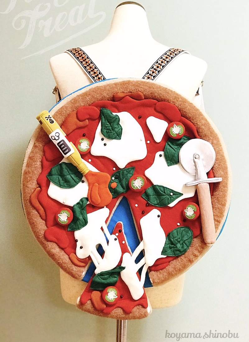 ▼PIZZA後背包,豐富的餡料讓人垂涎三尺。