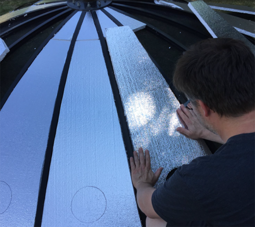 ▼Brett在雞舍內加了一層隔熱材料,還在雞舍圓圓的屋頂上塗上反光漆,讓雞舍變成冬暖夏涼的舒適空間。