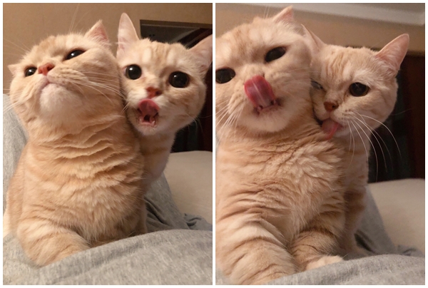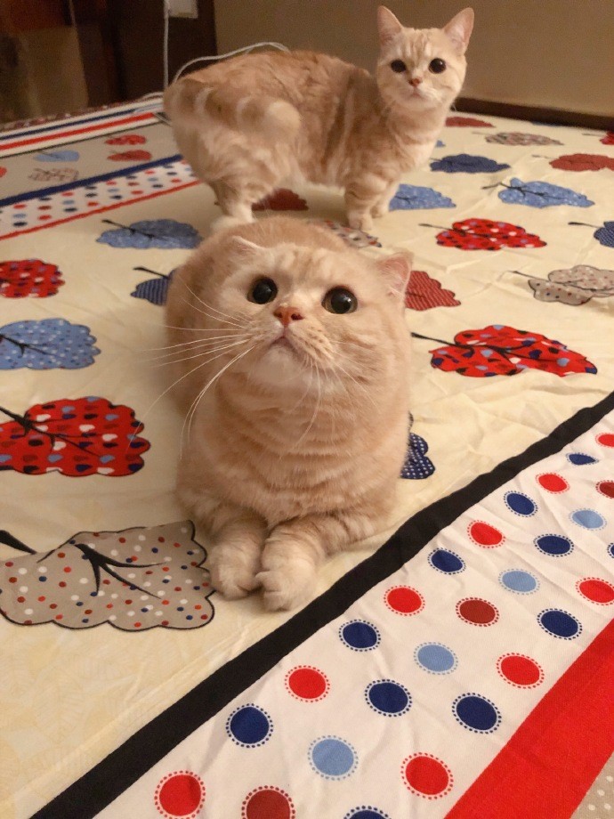 ▼周佳還有一個姐姐,是一隻叫「沙梨」的短腿橘貓。姐妹倆長得很像,不過仔細看看就能分辨出來了,姐姐的臉比周佳的稍微大一些,耳朵也小一點。