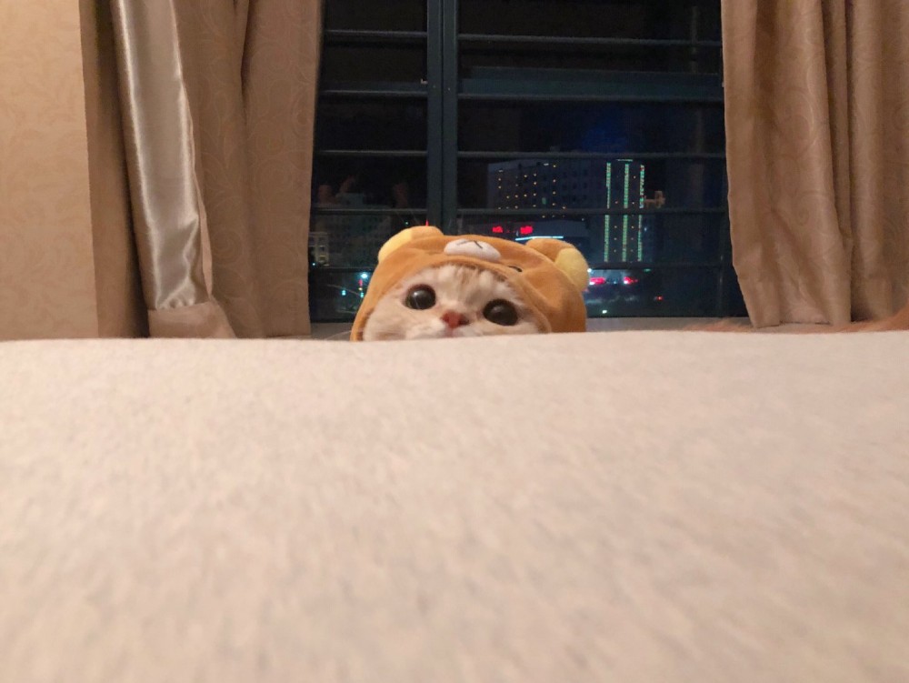 ▼這隻小萌貓戴上拉拉熊風格的帽子太合適了。