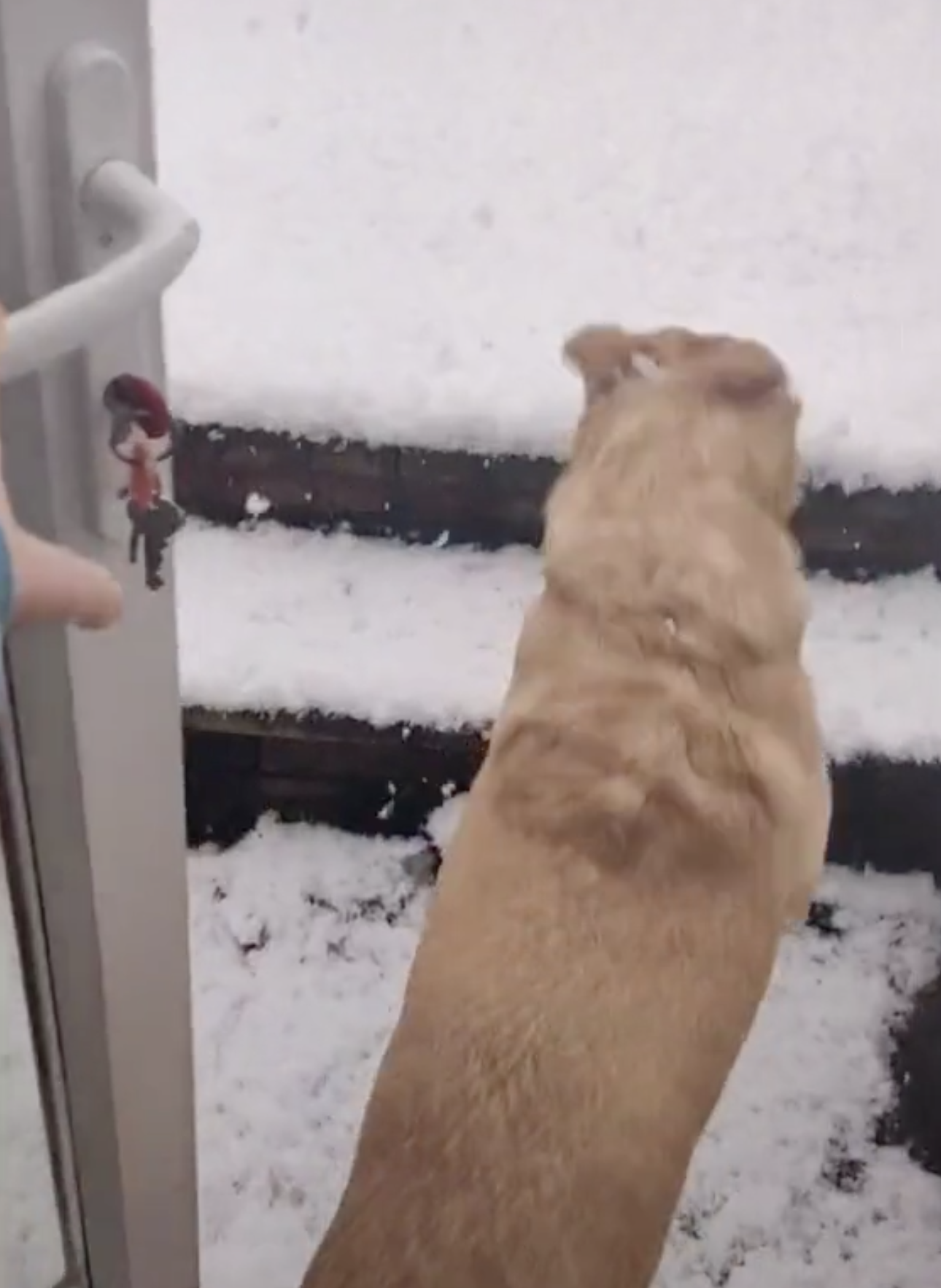 2021年01月31日毛孩能給人帶來很多歡樂!國外一位網友養了一隻狗狗,最近天氣冷颼颼,當地下了一場大雪,但狗狗堅持要出門玩耍。主人無可奈何,實在敵不過毛孩的盧小小,只好開門放牠出去。結果狗狗一出門就後悔了-雪地裡真的太冷了!