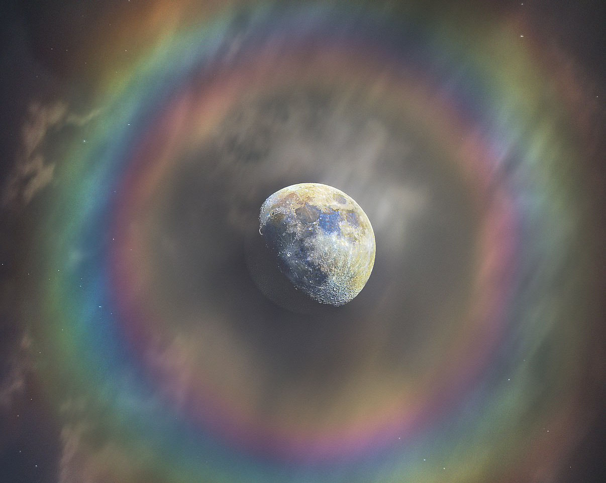 抬頭看看月亮吧!攝影師拍下「彩虹環繞月球」奇景 放大看月球絕美!