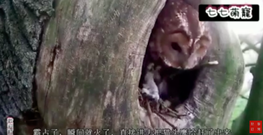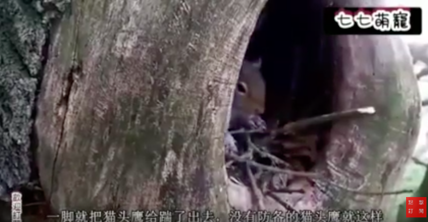 ▼貓頭鷹被小松鼠推出樹洞: