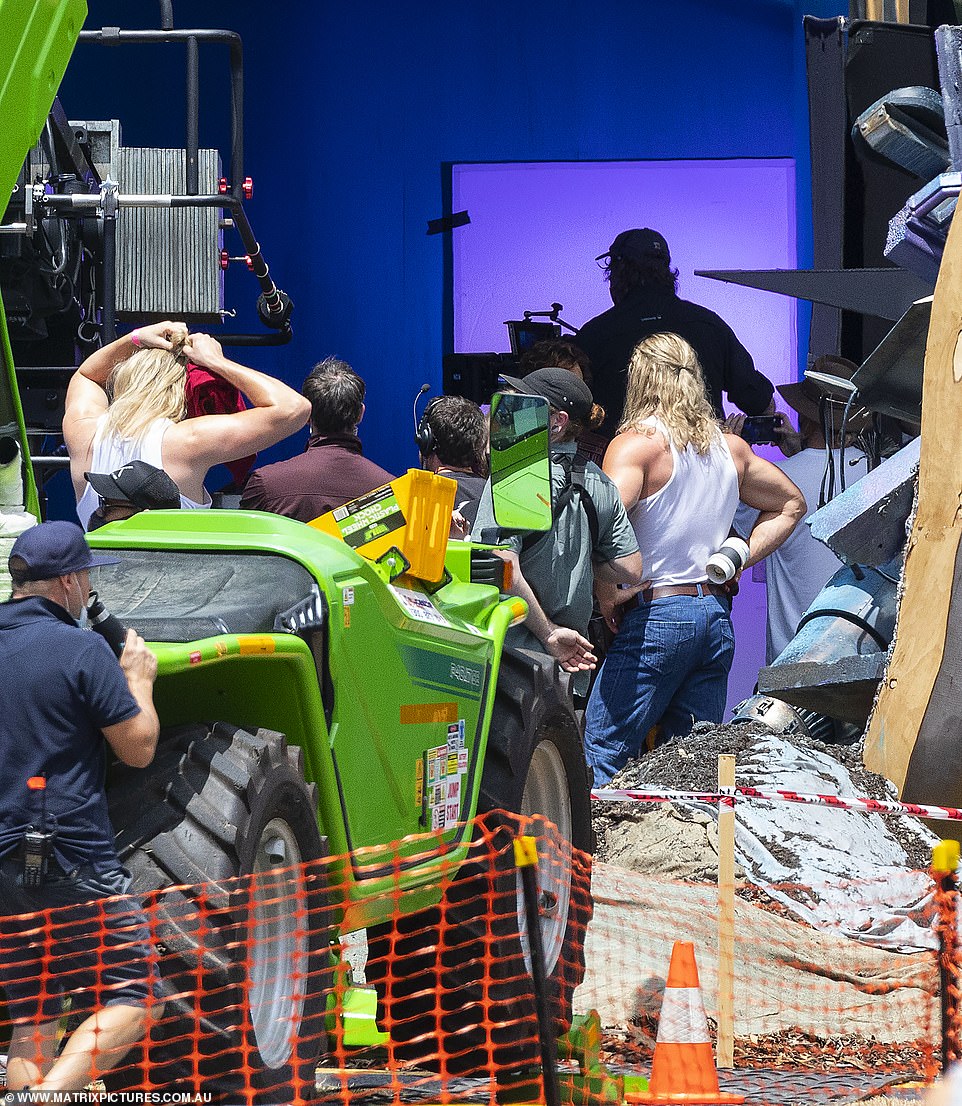 ▼克里斯漢斯沃留著長髮,全身的肌肉依舊亮眼,身高191公分的他堅持健身,超棒的身材在片場也很顯眼。
