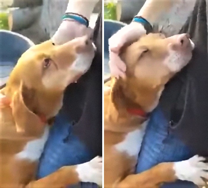 ▼這隻狗狗太熱情,記者實在不忍心推開他,於是任由牠抱著自己,還溫柔地伸手摸摸狗狗的腦袋,回應狗狗的熱情。狗狗見記者有回應,抱得更加起勁了。牠一臉開心,好像找到了主人一樣。這一幕正好被拍了下來。