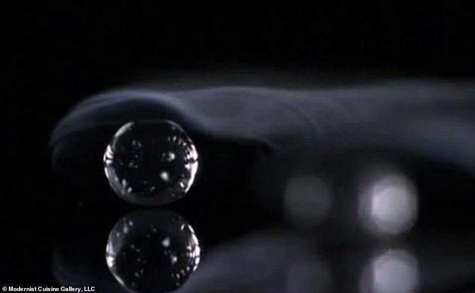 ▼Nathan還拍下了液態氮落入平底鍋,產生萊頓弗羅斯特現象(Leidenfrost Effect)的畫面。當液體接觸溫度超過沸點的物品時,液體表面會產生一層有隔熱作用的蒸汽,來減緩液體沸騰的速度。