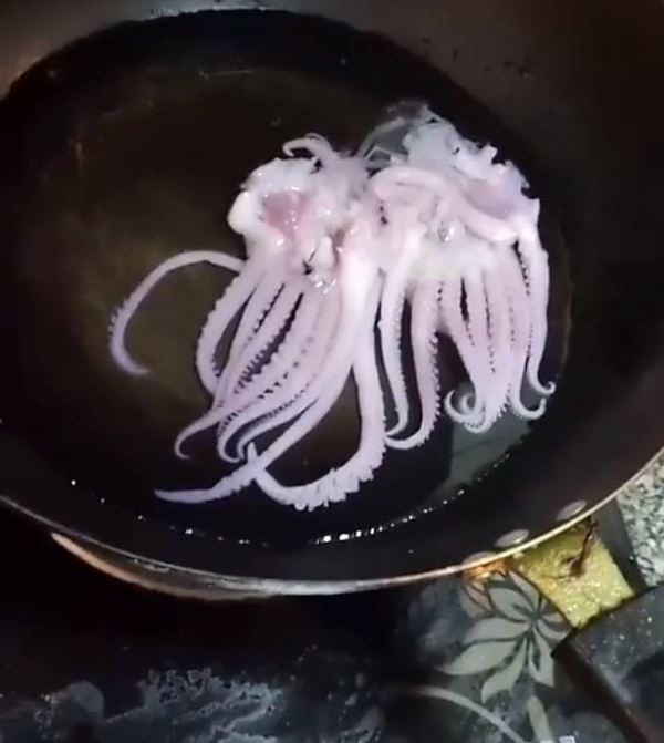 ▼四川成都的一名女子將從菜市場買了魷魚,下鍋烹煮後,發現魷魚竟然整條消失了,因此懷疑自己買到了假魷魚,但是當她將事件在網路上分享後遭到了很多質疑。於是隔天她又去市場上買了同樣的魷魚,然後再煮了一次。