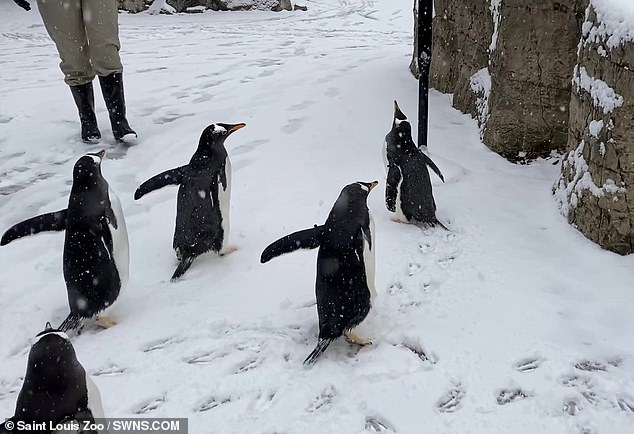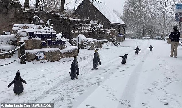 2021年02月08日近日美國中西部被大雪籠罩,位於密蘇里州的聖路易斯動物園(Saint Louis Zoo)也變得白茫茫。工作人員決定給企鵝們一個驚喜,帶牠們進行一次特別的「戶外教學」。飼育員帶企鵝們去見牠們從沒見過的動物,尤其是北極熊。這兩種動物原本應該生存在地球兩端,現在卻隔著玻璃相望,那畫面非常可愛~
