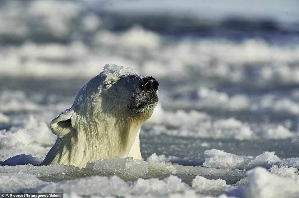 ▼攝影師表示,這些照片是在一艘船上拍攝的。這隻北極熊游過來觀察船上的人,他趁機拍下了珍貴的畫面。