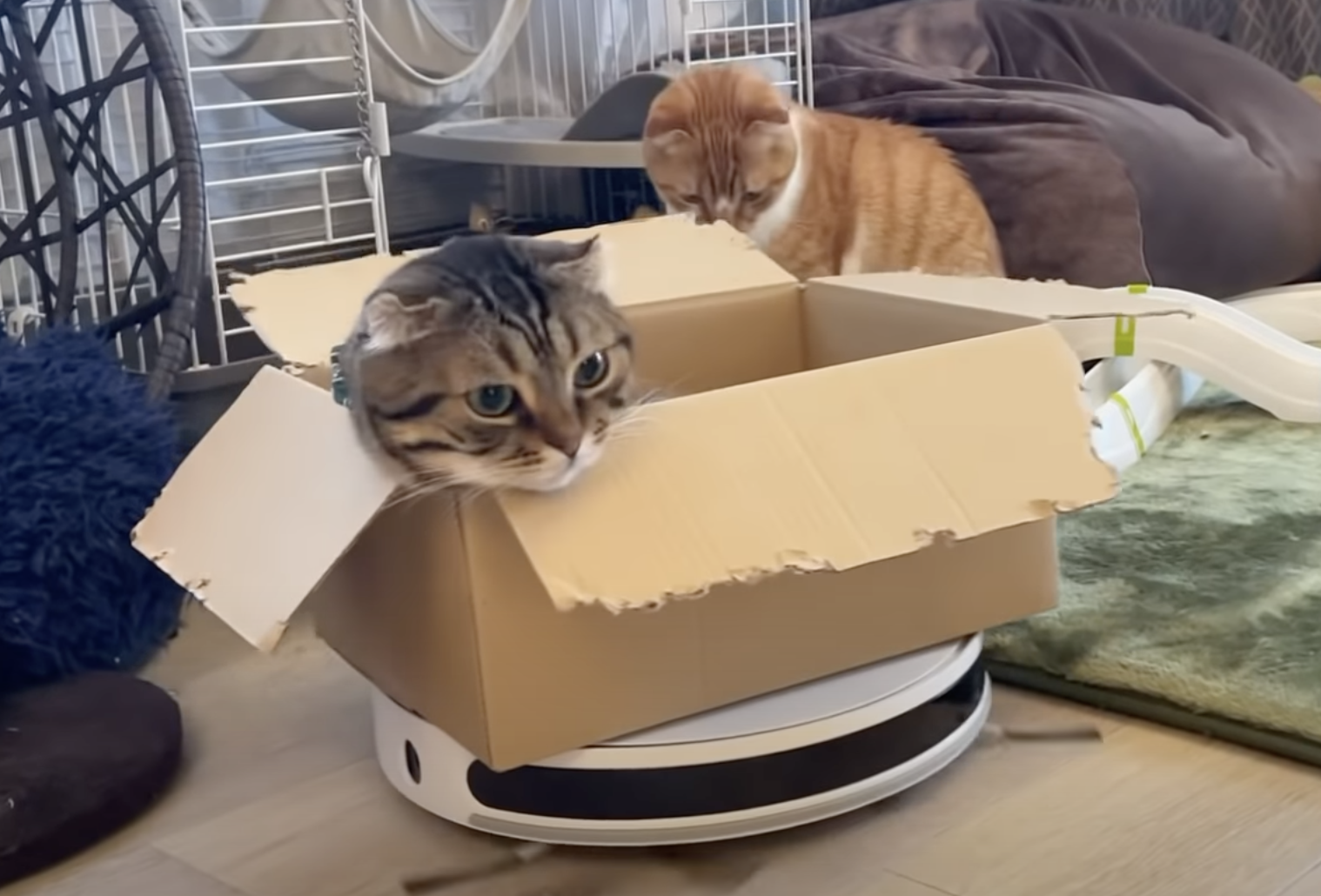 ▼在掃地機器人上擺一個紙箱,就能收穫喵星人!貓咪兄弟一起坐在掃地機器人身上,一臉舒服自在,感覺機器人的壓力超級大…