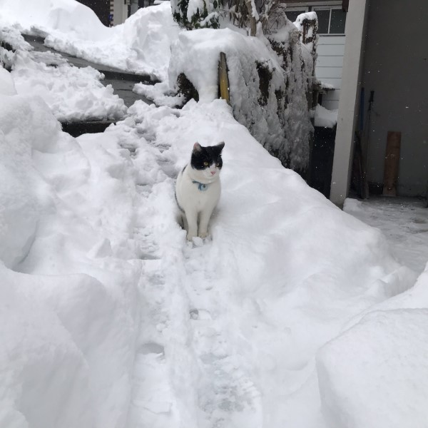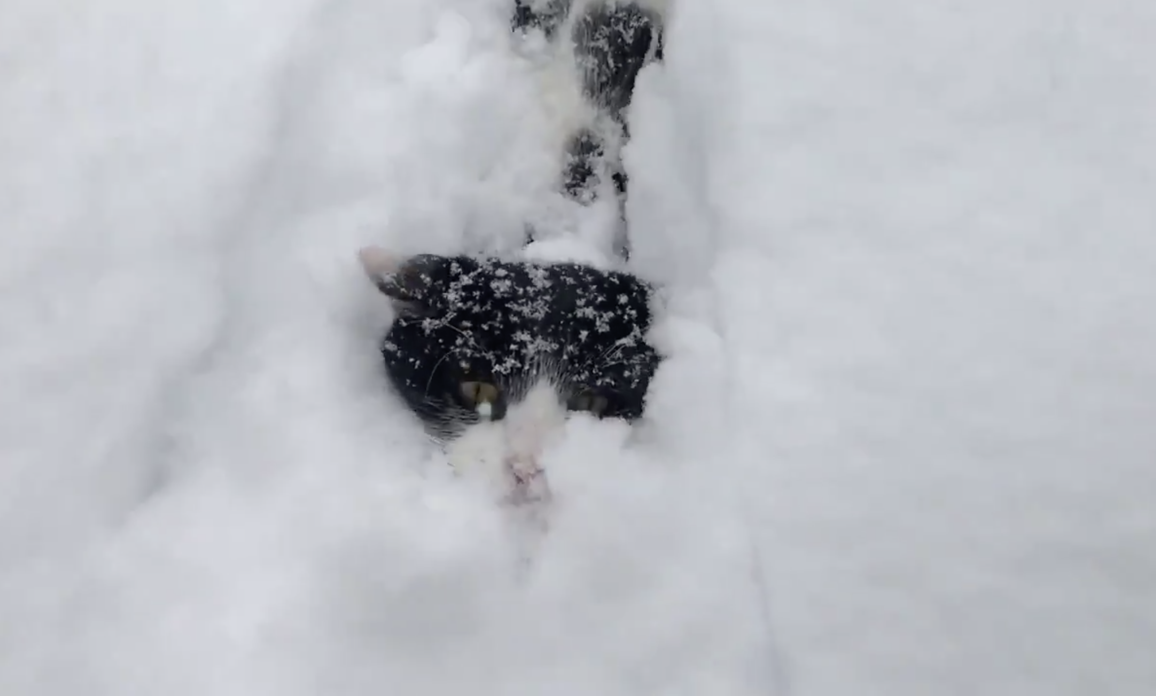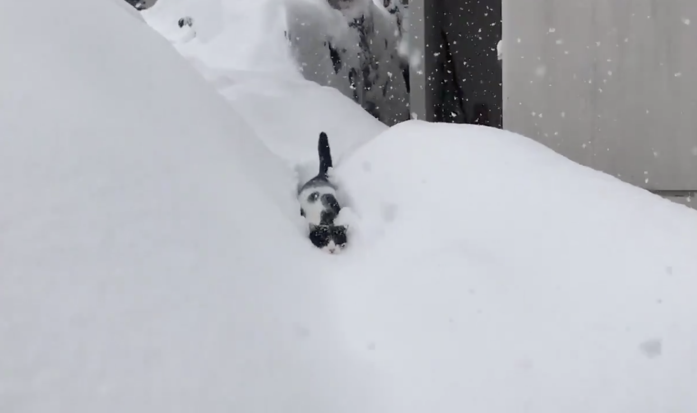不冷嗎? 旅館店喵最愛下雪天 牠出門「一頭塞進積雪」用臉開路:客人歡迎入住~