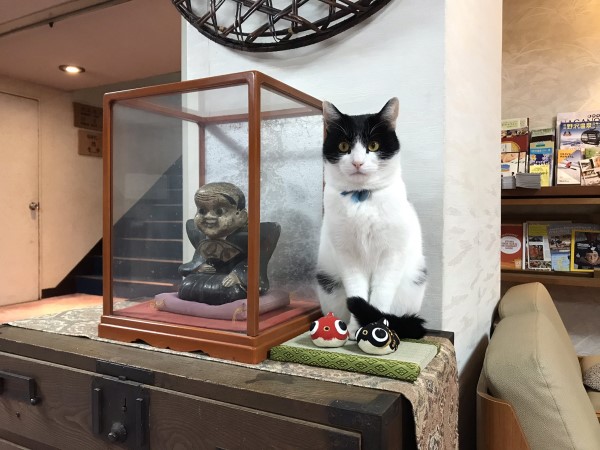 ▼店家介紹說,Hachi是一隻非常親人的貓咪,平時很喜歡跟旅客們一起玩。牠尤其喜歡被輕拍屁屁,平時會在旅館大廳或旅館經營的咖啡廳裡遊蕩,在客人中很有人氣。