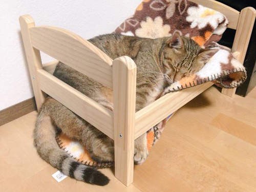 2021年02月07日你也有買過「貓床」給主子嗎?日本網友 @xxhama2 興致勃勃地幫家裡的愛貓買了新的小床,沒想到才剛開始用而已,貓咪就直接把床壓穿,龐大的身軀直接睡在中間…的地板上!整個畫面看起來超好笑啊~
