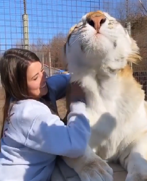 ▼從影片中可以看到,這名女子動作熟練地幫老虎抓癢。老虎顯然已經不是第一次享受這樣的待遇,牠自然地仰起脖子,還瞇著眼睛、左右移動,讓女子能幫自己抓到最舒服的地方。