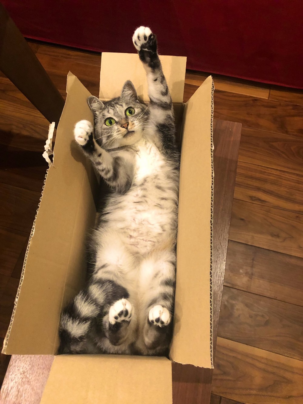 萌貓「紙箱裡伸懶腰」被拆封 牠一臉傻定格:嗯,為什麼你會發現?